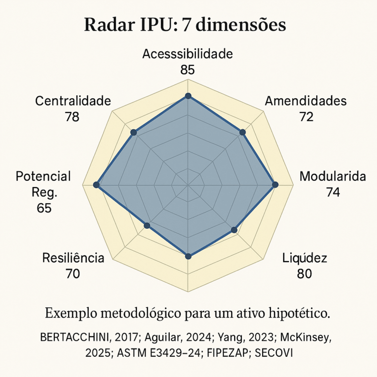 Como transformar due diligence em alavanca de TIR? Este artigo apresenta o Índice de Plasticidade Urbana (IPU) — métrica que integra acessibilidade, centralidade, modularidade e resiliência climática — e mostra como incorporá-lo ao modelo 7×R de diligência. Com dados atuais (INCC, SECOVI, juros) e referências globais, demonstra-se como comprar opcionalidade e projetar para o switch, elevando liquidez e valor em ciclos voláteis