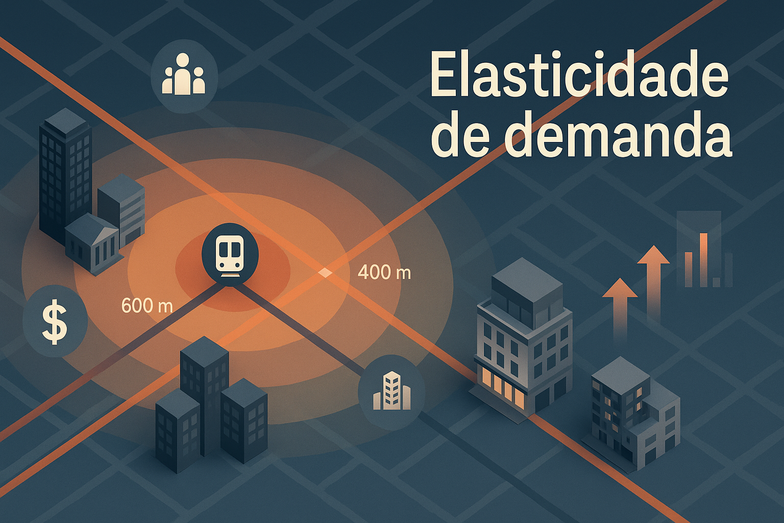 Em mercados urbanos complexos, a demanda por imóveis não é homogênea no espaço: ela se concentra e se move conforme os custos de deslocamento, a acessibilidade e o ciclo macroeconômico. Em linguagem de incorporação, eixos de transporte (metrô, trens metropolitanos, BRTs, corredores estruturais de ônibus) funcionam como alavancas de elasticidade da demanda: reduzem o custo generalizado de viagem, ampliam o raio efetivo de empregos e serviços acessíveis e, por consequência, elevam a disposição a pagar e a velocidade de absorção — quando a tipologia e o preço dialogam com renda e crédito disponíveis.