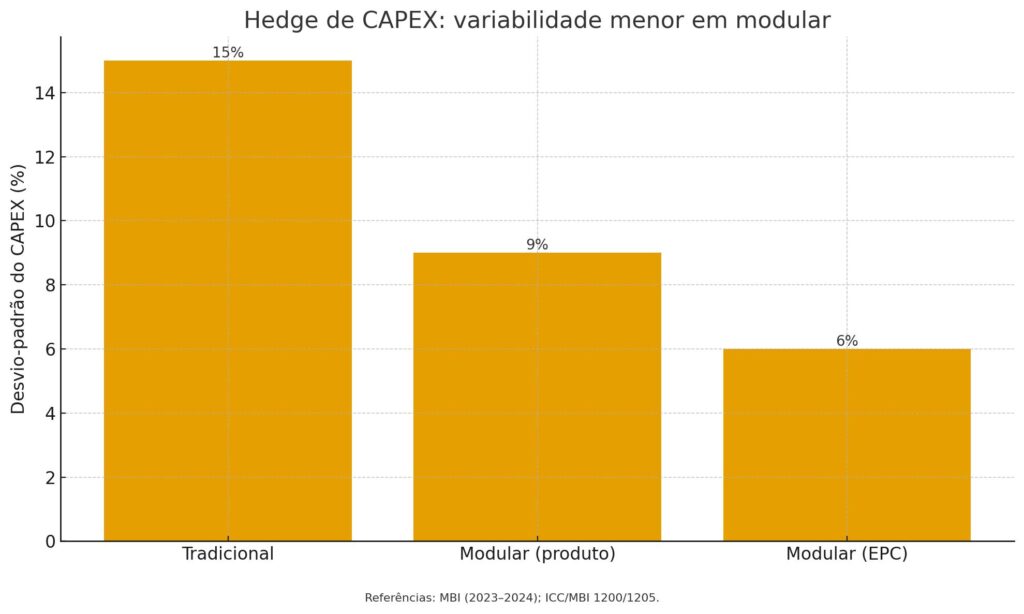 • CAPEX: desvio-padrão orçamentário < ±10% quando modular por produto (Figura 2). Modular Building Institute