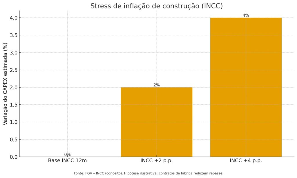 3. Contratos por produto com travas de preço e SLAs → transferência de parte do risco de execução para a fábrica, reduzindo exposição ao INCC no curto prazo. (Figura 3.)