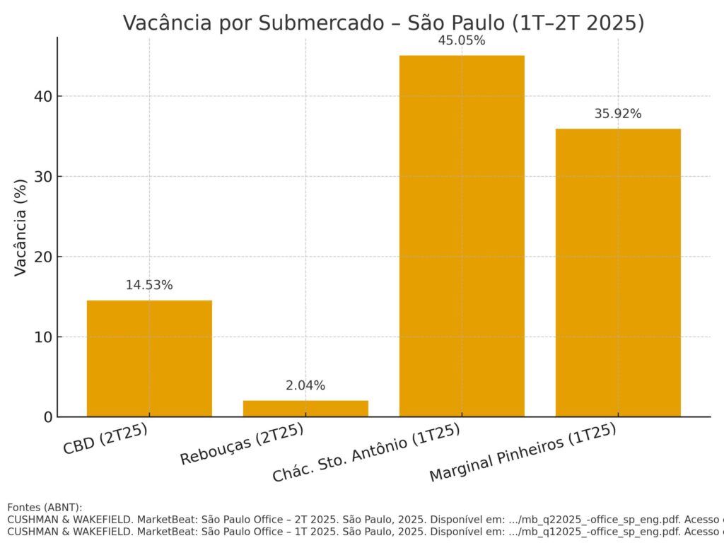CUSHMAN & WAKEFIELD. MarketBeat São Paulo Office Q2 2025. Disponível em: https://assets.cushmanwakefield.com/-/media/cw/marketbeat-pdfs/2025/q2/brazil/mb_q22025_-office_sp_eng.pdf . Acesso em: 08 out. 2025. assets.cushmanwakefield.com