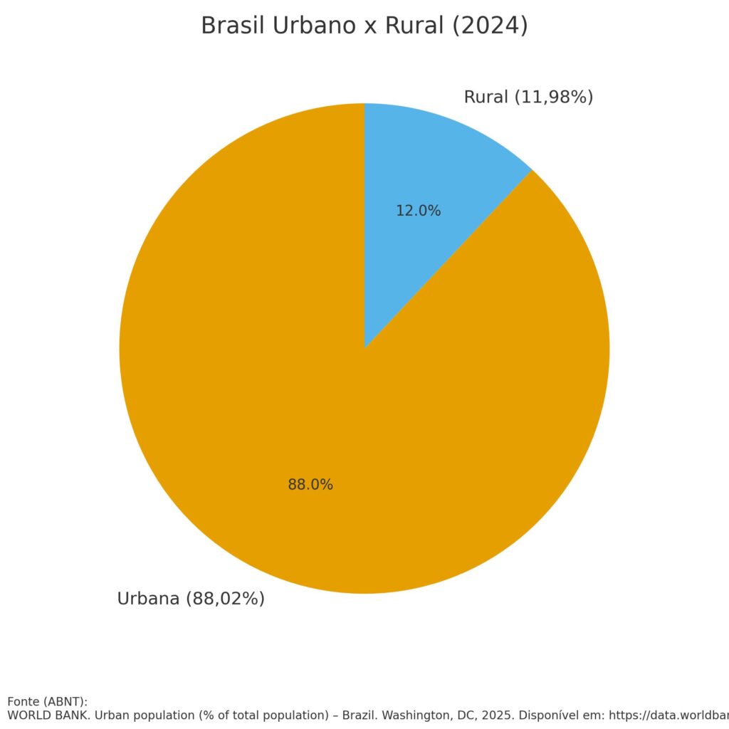 WORLD BANK. Urban population (% of total) – Brazil. Disponível em: https://data.worldbank.org/indicator/SP.URB.TOTL.IN.ZS?locations=BR . Acesso em: 08 out. 2025. World Bank Open Data